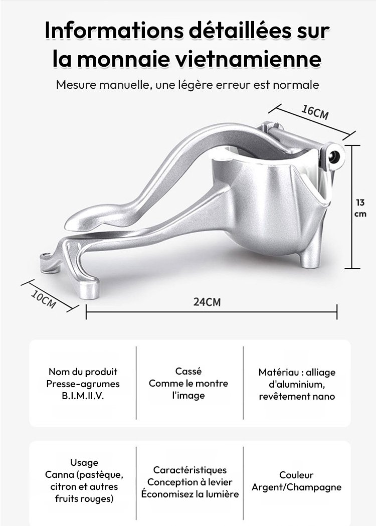 Faites le plein de fraîcheur avec notre presse à jus manuel, idéal pour des boissons saines et délicieuses !